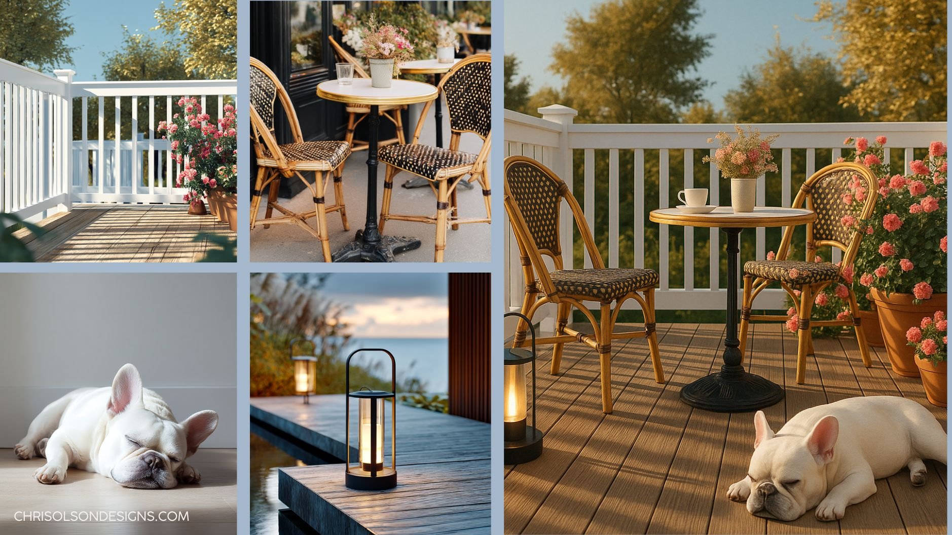 Four reference images used for creating a suburban deck scene using ChatGPT.