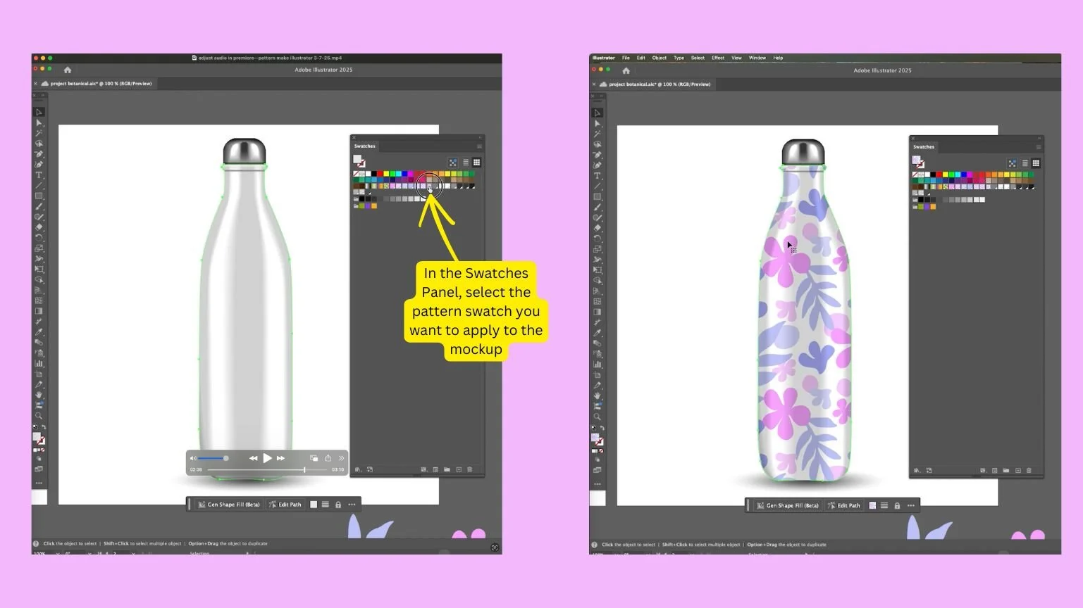 In this quick tutorial on creating a seamless pattern using Adobe Illustrator, I show you how to arrange your elements and use the Pattern Make feature to set up a perfect pattern tile and then how to test how the pattern looks when applied to a water bottle mockup.